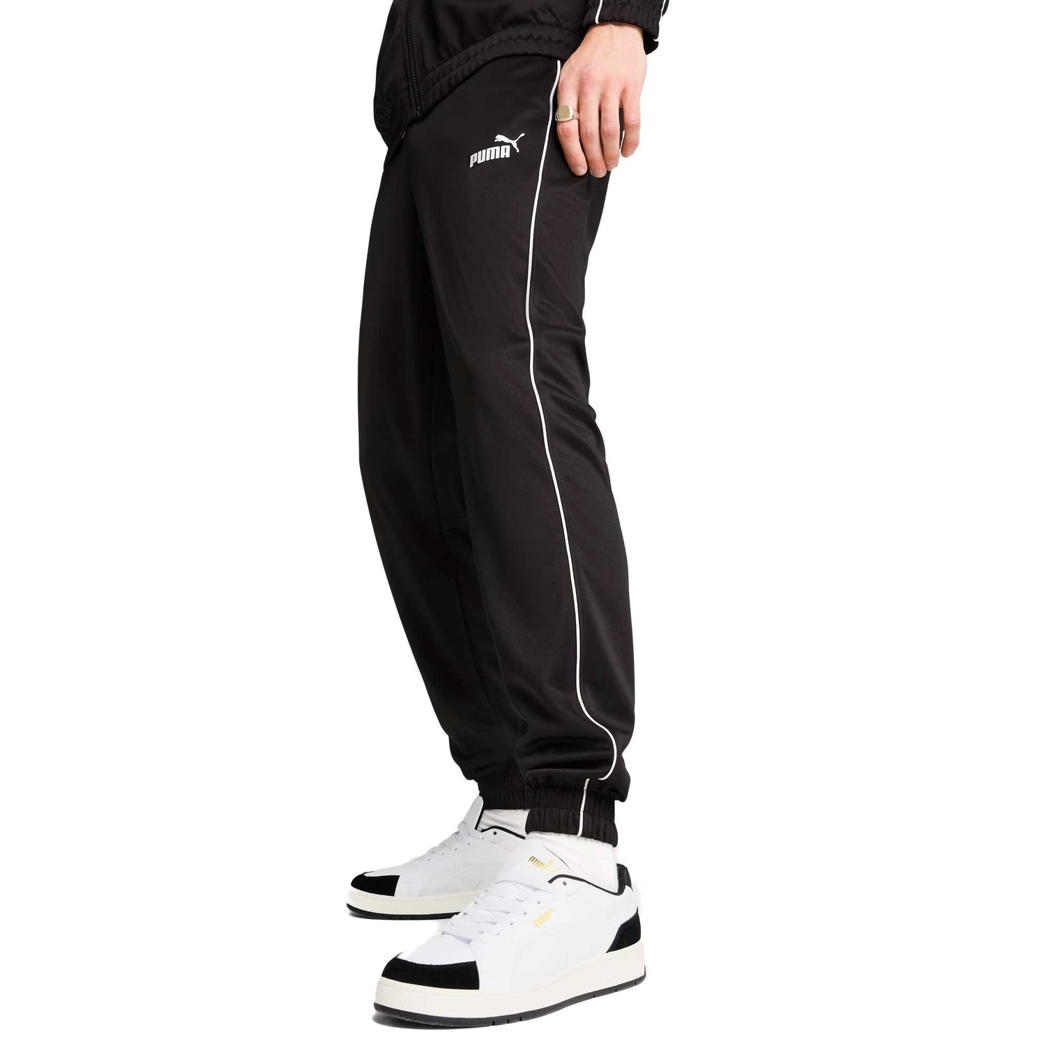 O detalhe em filete branco nas laterais dá um contraste discreto e estiloso, além de valorizar o design da calça. O logo Puma na perna completa o visual com autenticidade.
