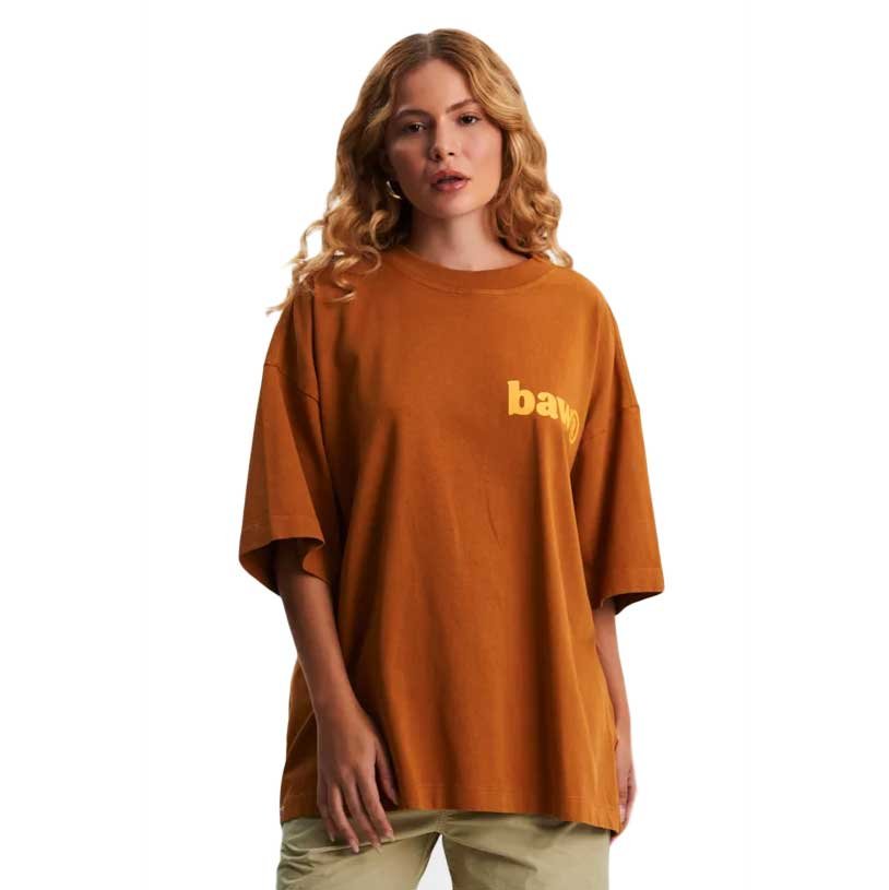 O logo “baw®” discreto na parte frontal mantém a proposta minimalista, enquanto a estampa nas costas com montanhas e sol em contraste vibrante cria um impacto visual que chama atenção na medida certa. A arte reforça a inspiração outdoor com uma leitura urbana atual, tornando a peça ainda mais desejável para compor produções autênticas.