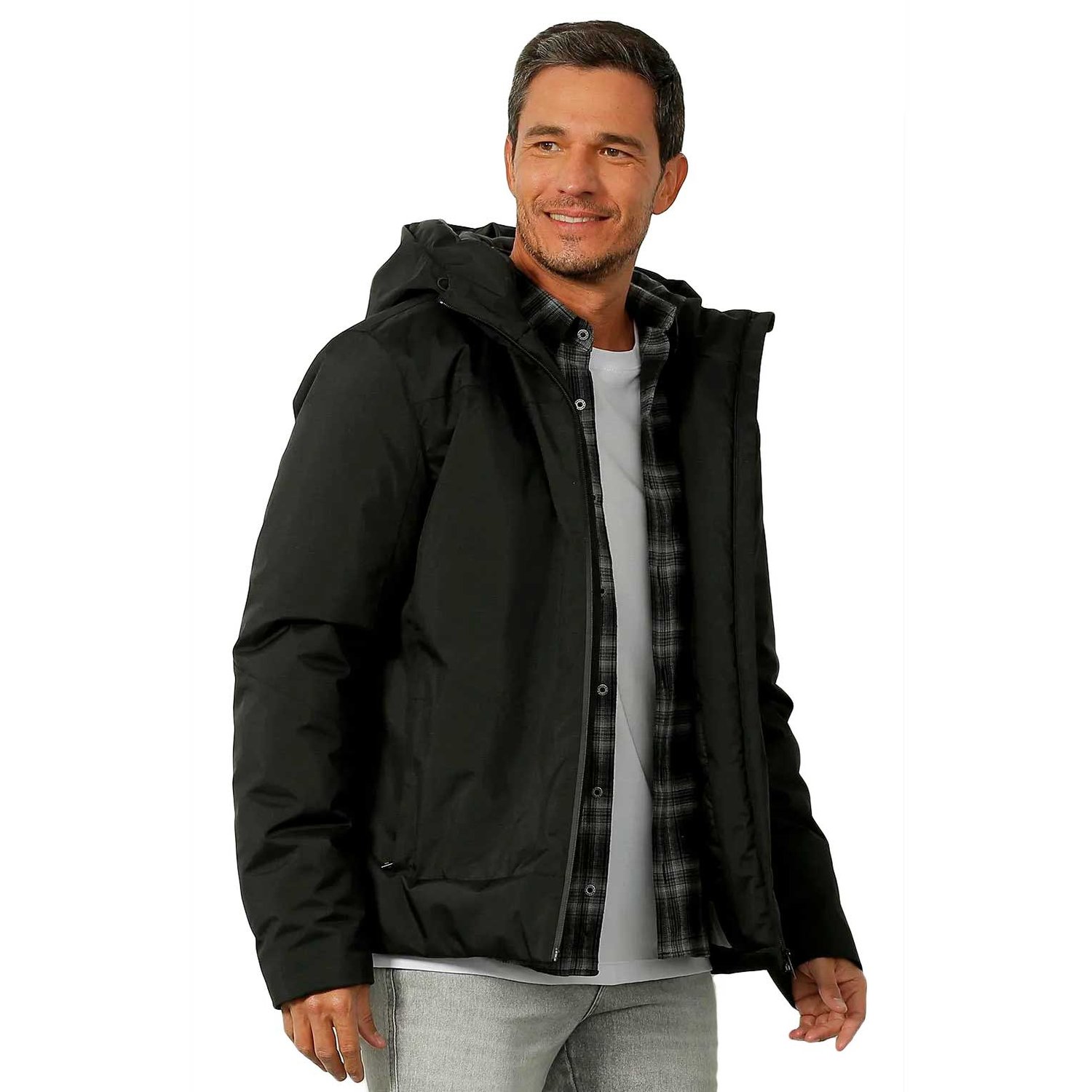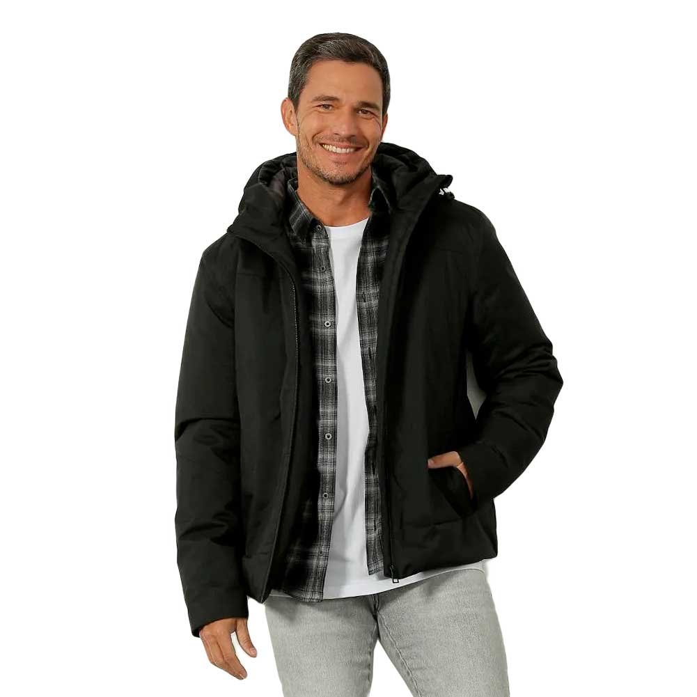 A jaqueta ainda conta com capuz ajustável, bolsos práticos e fechamento com zíper de nylon impermeável que reforçam a praticidade no uso diário.