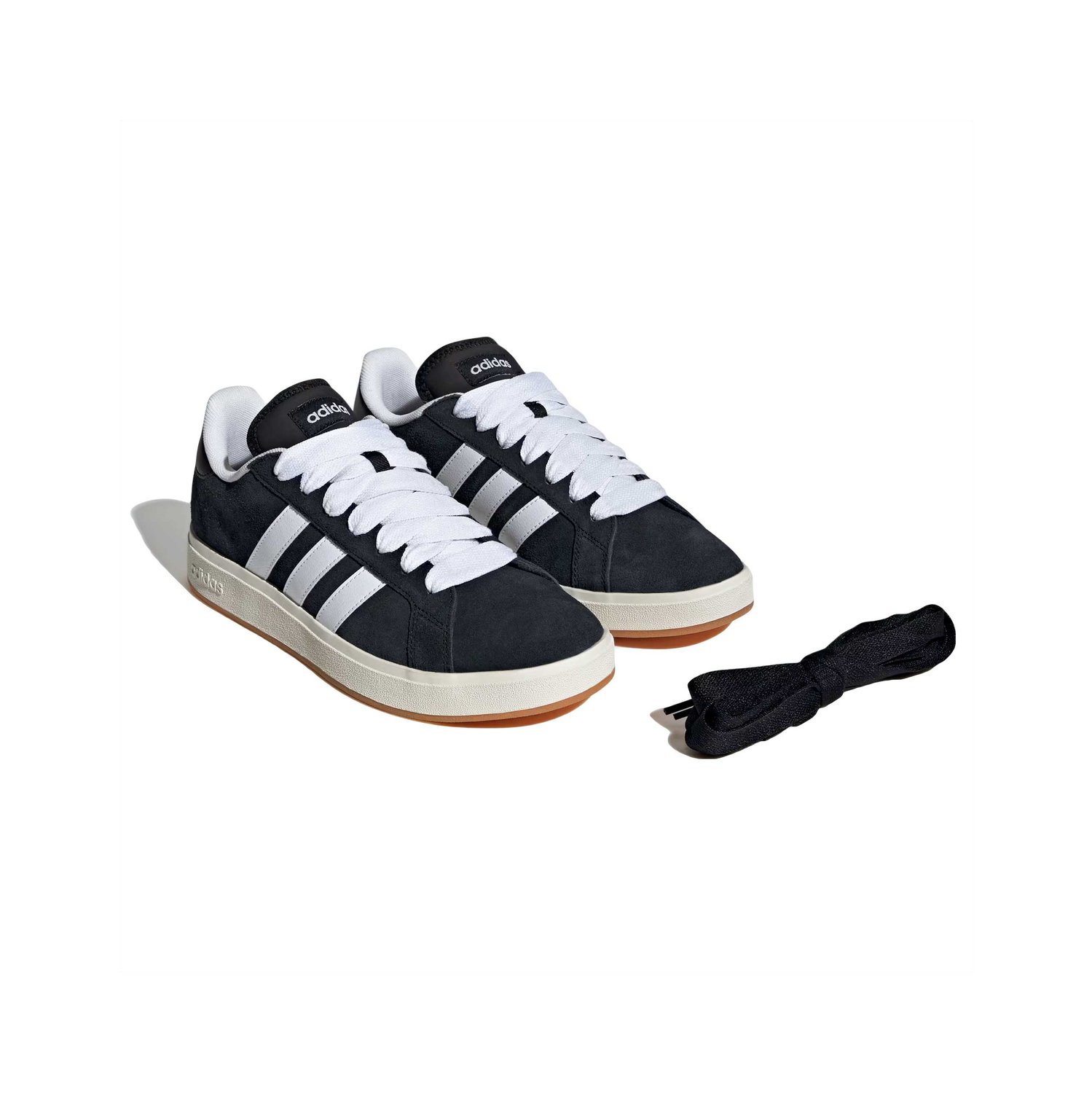 O Adidas Grand Court Base 00s, traz a essência dos anos 2000 em um design marcante na clássica combinação de preto com detalhes em branco, perfeita para quem busca um visual versátil e atual.