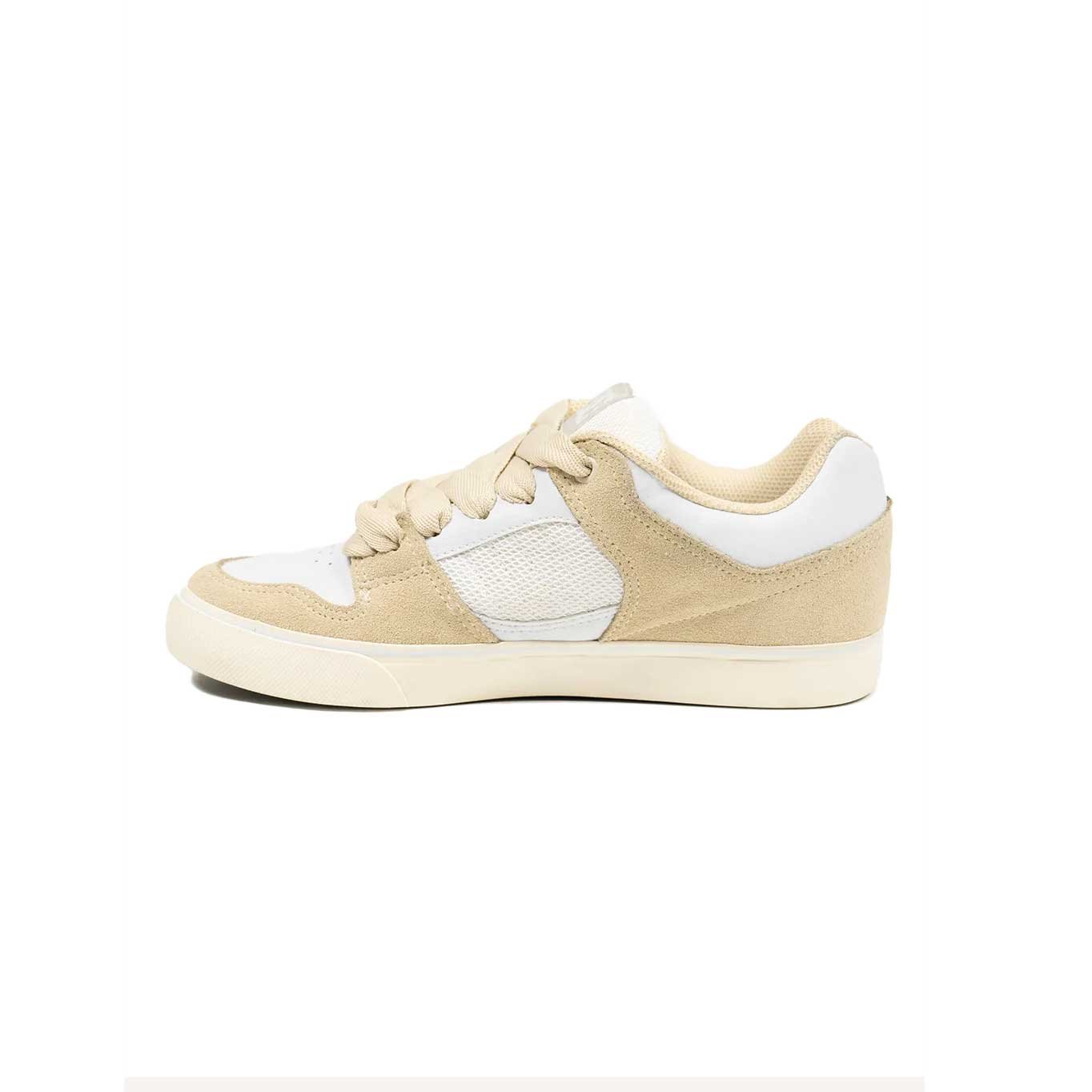 O cabedal combina camurça, material sintético e mesh, oferecendo resistência, respirabilidade e estrutura na medida certa. O fechamento em cadarço fat lace reforça o visual street e garante ajuste firme aos pés.
