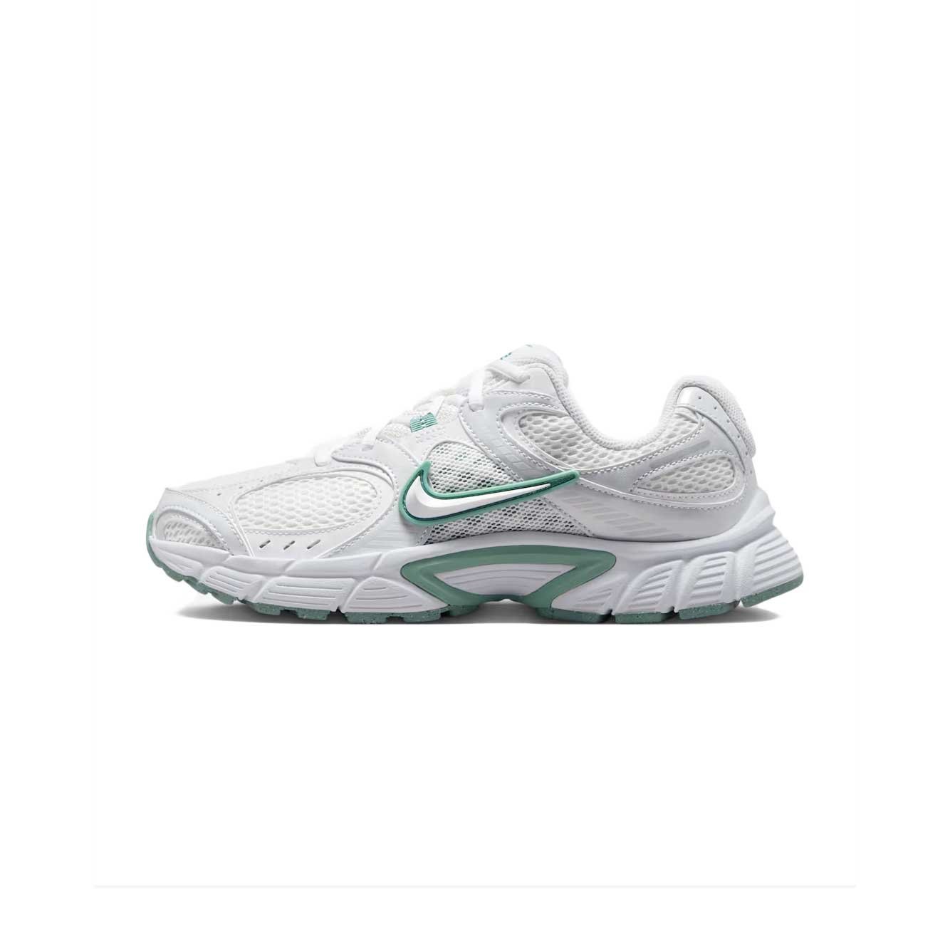 O Nike V5 combina um visual esportivo com um toque de estilo atual. Nesta versão, o modelo chega em branco com detalhes em verde, criando um contraste marcante que reforça sua presença e facilita combinações com qualquer look casual ou esportivo.